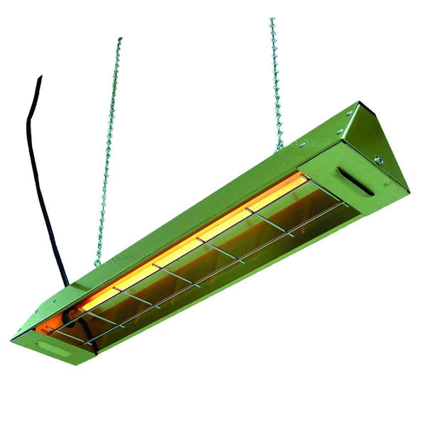 With its single-phase motor, this product delivers 1877 BTUs and 550 watts via a 5-amp current. This utility infrared heater also features an 8-foot long 18/3 grounded cordset to plug into any 120-volt power source. As for easy mounting and extra support, the heater also comes with jack chains that measure 4 feet long.