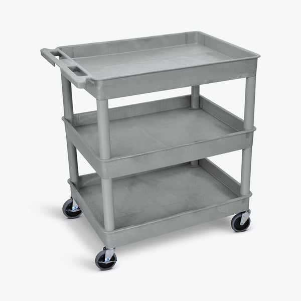 Luxor 32" x 24" 3-Shelf Large Tub Cart with 4" Casters (Gray) - TC111-G
