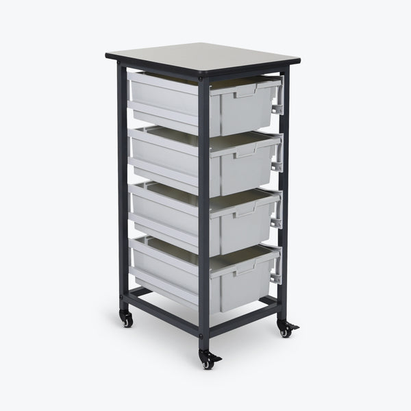 Luxor 4-Tub Mobile Bin System (Large) - Single Row 12.25"W x 16.75"D x 37.5"H (Black/Gray) - MBS-SR-4L
