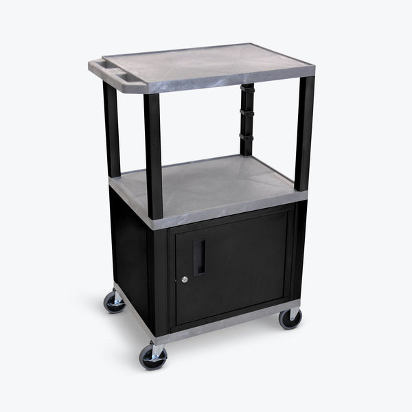 Luxor 42" 3-Shelf Tuffy AV Cart with Electric Assembly, Black Cabinet & Legs (Gray Shelves) - WT42GYC2E-B
