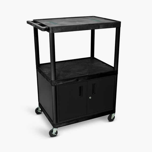 Luxor 48"H Endura 3-Shelf Cart w/ Cabinet 32"W x 24"D x 48.25"H (Black) - LE48C-B