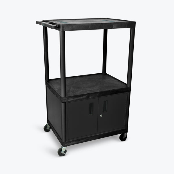 Luxor 54"H Endura 3-Shelf AV Cart w/ Cabinet 32"W x 24"D x 54.25"H (Black) - LE54C-B