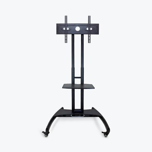 The Luxor Adjustable-Height TV Stand with Accessory Shelf FP2500 is a functional piece of equipment with a sturdy build. It has a durable steel construction that allows users to confidently mount oversized televisions weighing up to 100 lbs, with sizes ranging from 40 inches to 60 inches. This TV cart was also designed to be height-adjustable, which means that it can adjust from 46.5 inches to 62.5 inches in 2-inch increments. With this feature, the Luxor FP2500 can easily accommodate the presentation or entertainment needs of an area or room.