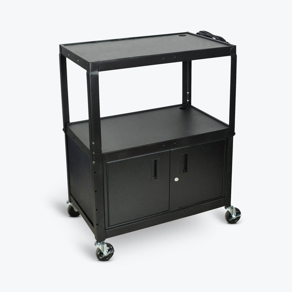 Luxor Extra Wide Steel Adjustable Height AV Cart w/ Cabinet 32"W x 20"D x 24" to 42H (Black) - AVJ42XLC