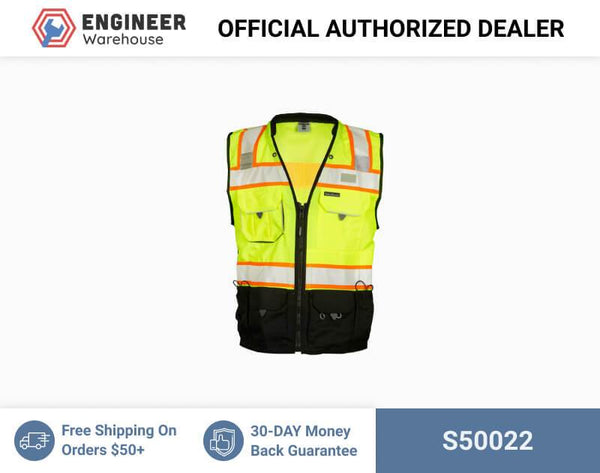 Get 5% OFF ML Kishigo Surveyor Vests Premium Black Series Surveyors Vest - 2XLarge - Lime - S50022