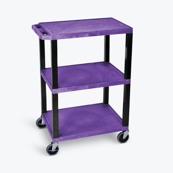 Luxor 34" 3-Shelf Tuffy Specialty Utility Cart, Black Legs (Purple Shelves) - WT34PS