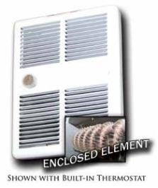 Constructed with steel, this wall heater has a white powder-coated finish over an 18-gauge steel front for a clean look. For extra durability and a long life span, its finned tubular elements are also made of steel. Not only that, but its wall box and drywall-depth embossments on the back can make it easy to install.