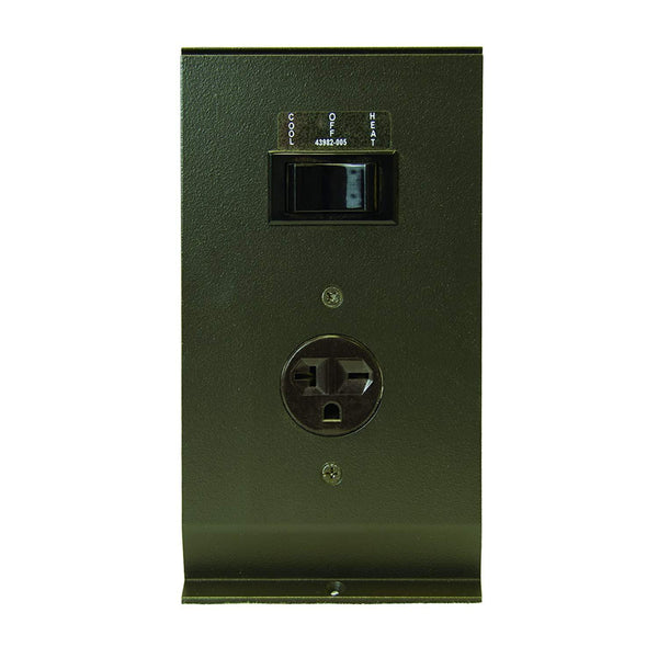 This brown-colored air conditioning receptacle section is made for compatibility with 20 amps at any power supply from 125 to 277 volts. This receptacle plate is ideal for use with the 3900 or 3700 Series Baseboard Heaters from TPI Corporation.
