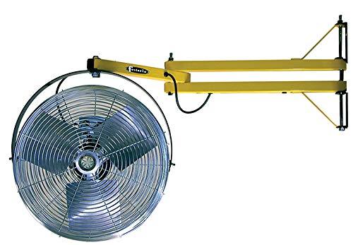 The mounting arm, meanwhile, is made of 14 gauge steel tubing measuring 1 ½-inch square. To secure it onto the wall, its 3-inch by 5-inch by 3/16-inch mounting plate can be fastened using four 3/8-inch bolts. The arm also comes with a 5-foot long conductor cord and grounded plug that can easily supply the fan with the required electricity.