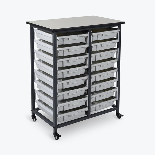 Luxor’s Double-Row 16-Tub Mobile Bin System is available here on Engineer Warehouse, an authorized Luxor distributor.