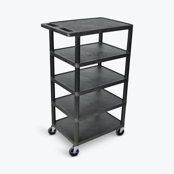 Luxor 5-Flat Shelf Utility Cart 24"W x 18"D x 46"H (Black) - BC50-B