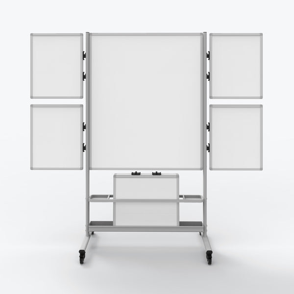 The writing surface can be extended using the four smaller removable whiteboards affixed to the side of the whiteboard. These magnetic boards can be easily detached for individual use and safely stowed into the dedicated tray below the main board along with the markers and erasers.