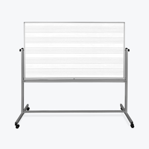 Luxor 72" x 48" Reversible Magnetic Mobile Music Whiteboard 74.5"W x 23"D x 72"H (Silver/White) - MB7248MM