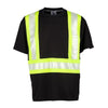 Microfiber polyester material wicks away moisture, 2” wide high performance reflective material on contrast panels, Flat stitched contrast panels improve daytime visibility and significantly improves comfort and coolness over layered contrasting panels, Left chest pocket.